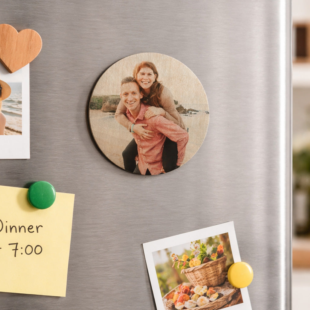 Woodgrain Circle Photo Magnet