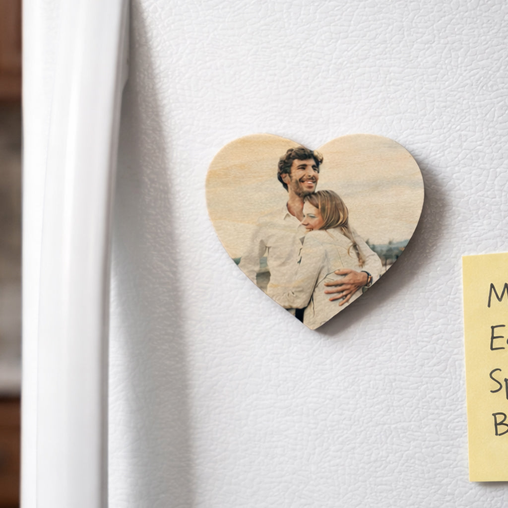 Each 2.5" x 2.2" heart shaped magnet is crafted from real birch wood, highlighting it's natural grain and warm, organic texture - making every magnet beautifully one of a kind. Perfect for couples, anniversaries, weddings, or meaningful everyday moments, this magnet adds a personal, love-filled touch to any space.
