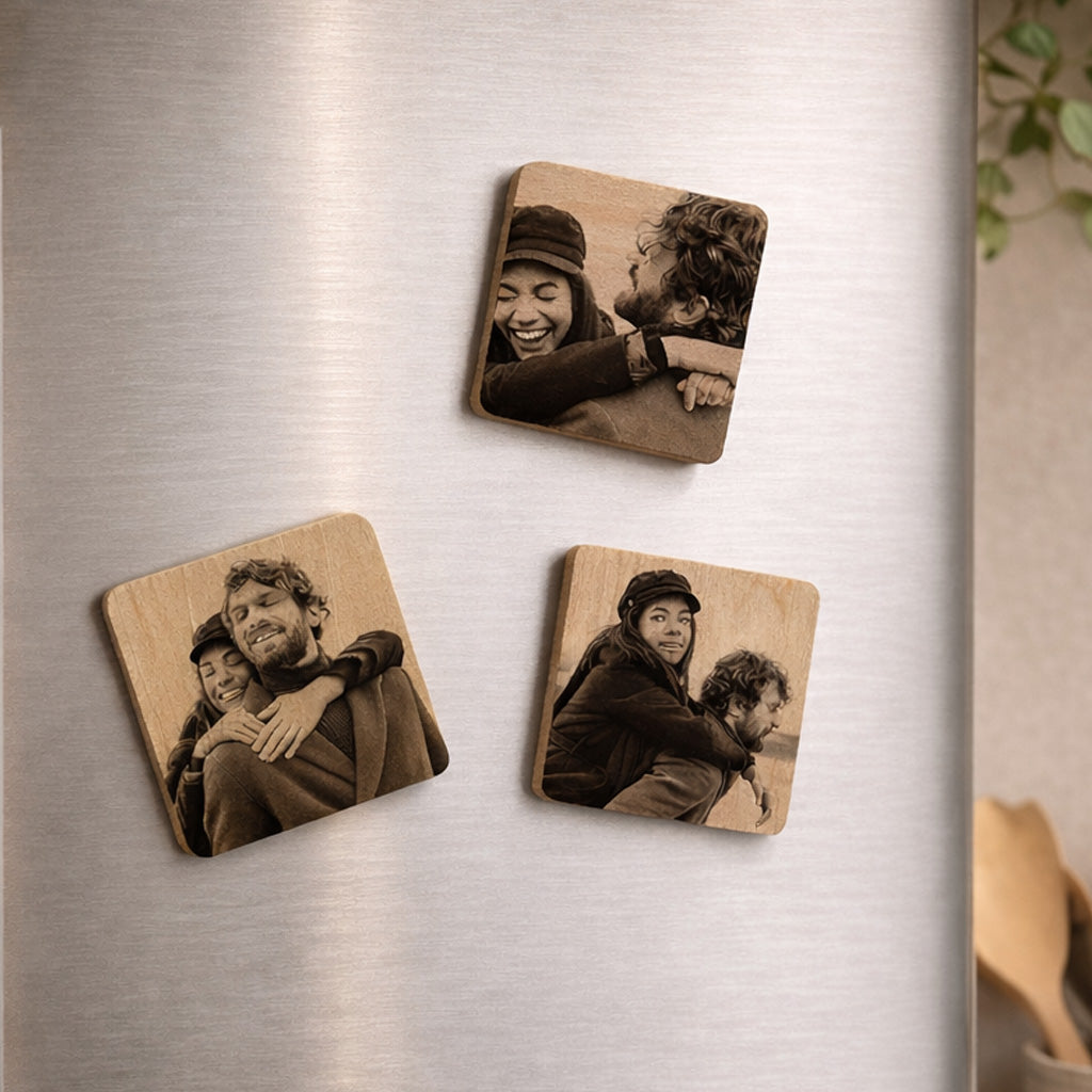 Woodgrain Square Photo Magnet Set